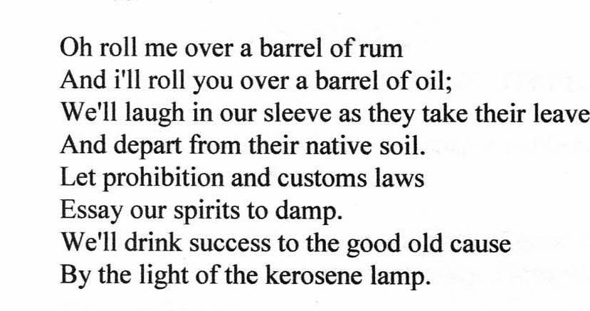 All of these things excited us and kept us talking till January when a long-expected raid was made upon the worst of all criminals in our state, the rum sellers, by the sheriff of the county, who I believe, resides somewhere in the suburbs of the city of Calais. This caused much excitement with its arrests, officers, counsels, magistrates, County Attorney, continuances, anonymous letters, summonsing of witnesses, mysterious trips to Calais, doubt about convictions, delays, summonings of more witnesses, mysterious trips to Calais, doubt about convictions, delays, summonsing of more witnesses, charges of forgery, charges of perjury, charges of bribery and other pleasantries of a similar nature which were indulged in by the accused, counsel, witnesses, officers and outsiders for more than two weeks.