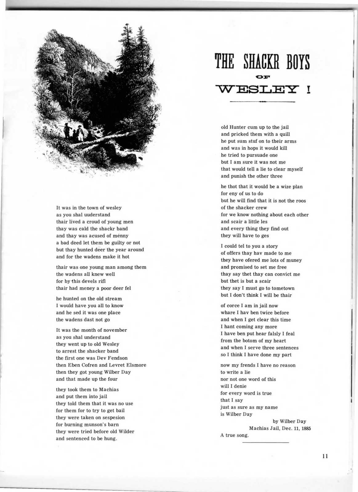 The Courthouse archives contain many references to the transgressions of Wilber Day, George Magoon and the other combatants in the game wars. File 4702 of the Courthouse records contains the documents related to Day’s arson conviction. It may also contain a copy of the song Day wrote while serving his sentence with which I’ll end this already overlong article.