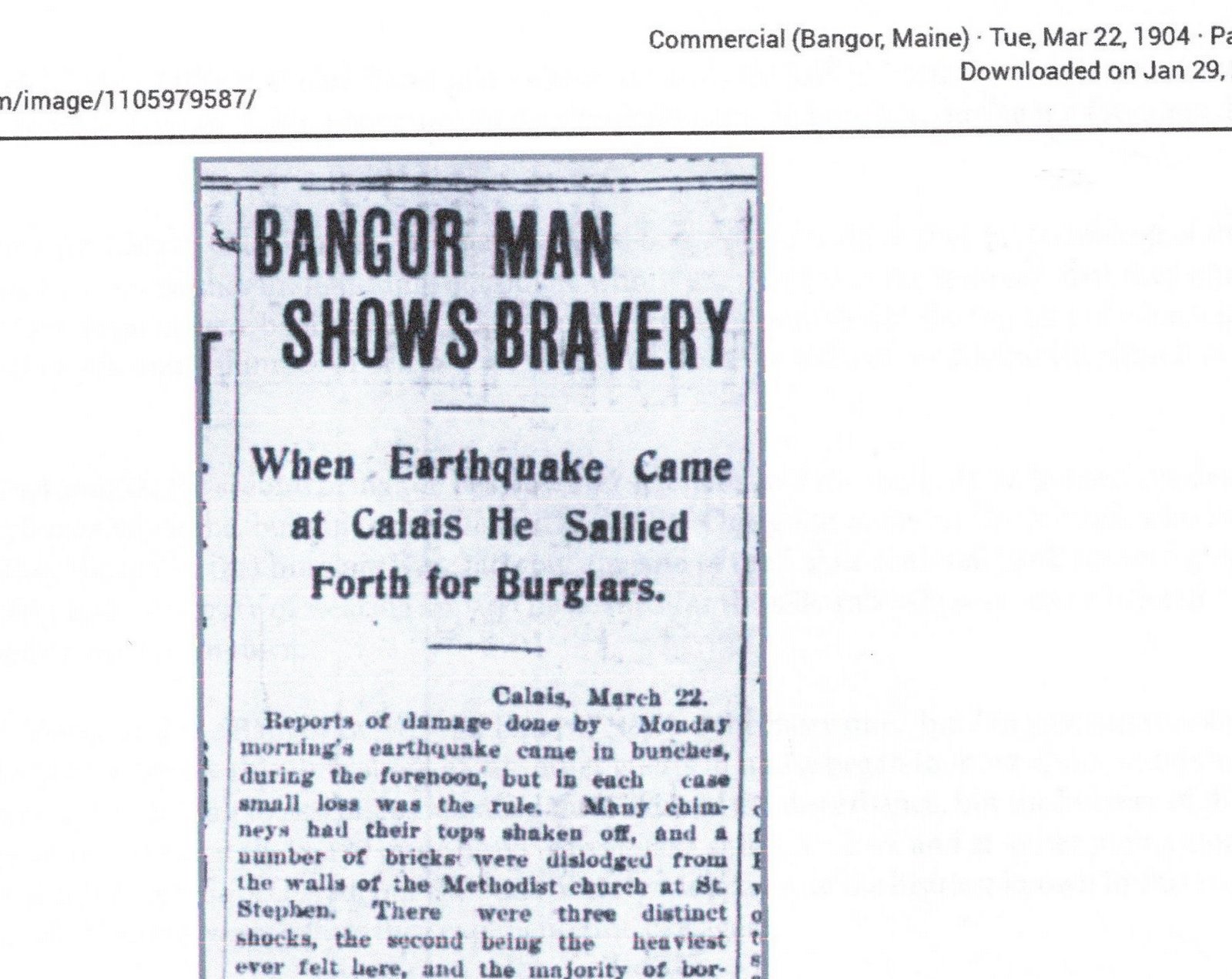 Bravery Bangor Commercial March 22, 1904: