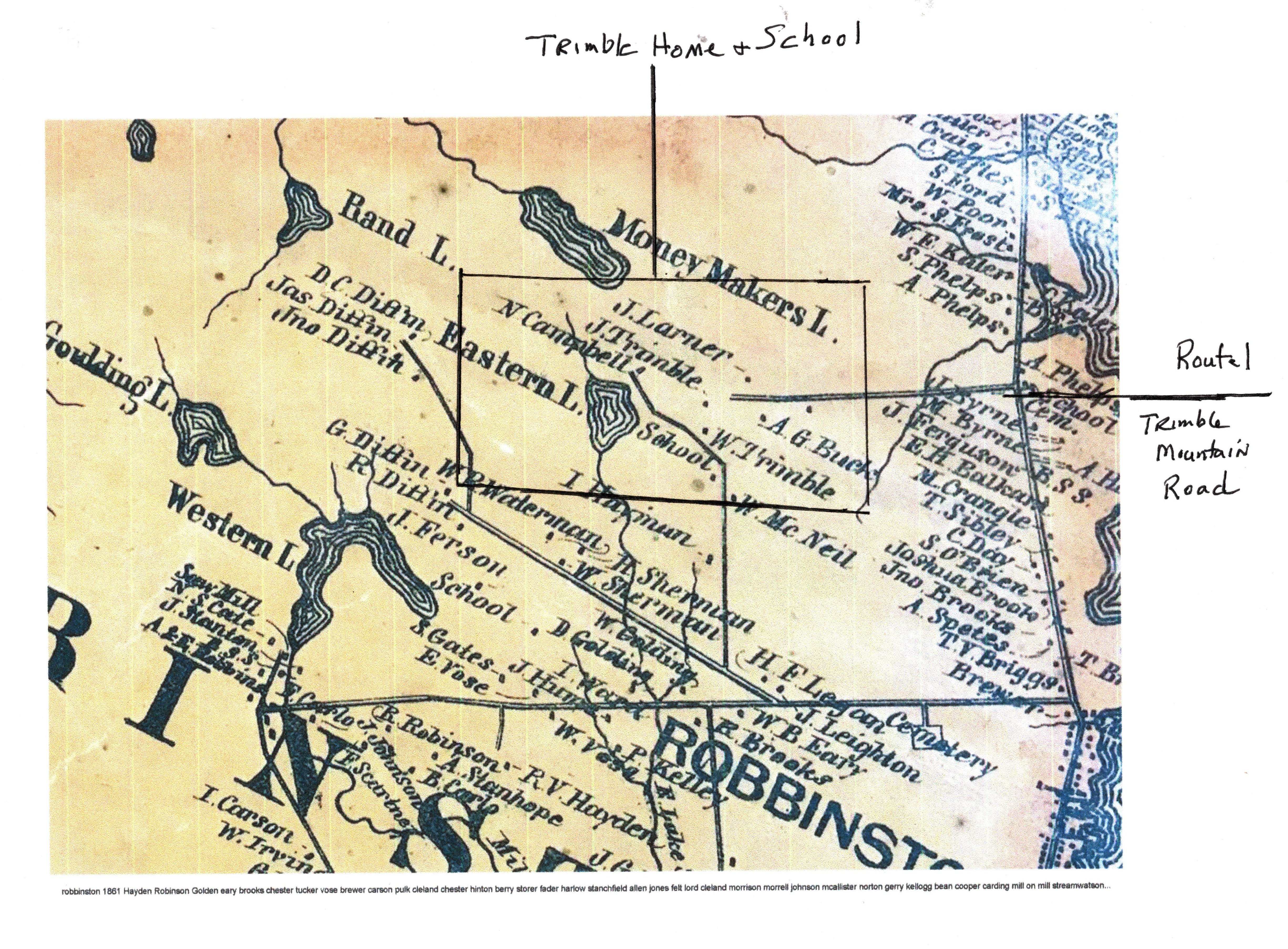 Laurence’s father John Charles Fremont Trimble was born in Robbinston on May 14, 1856, and married Maria Clark in Robbinston on July 22nd, 1882. According to the 1881 map of Robbinston John and Mary were then living on what is now known as Trimble Mountain. At the time there was a substantial settlement in the vicinity of Trimble Mountain including many Diffins, Campbells, Nashes, Haymans and Bucks. There were enough children to warrant a school just down the road from the Trimble residence. Almost certainly Laurence’s sister Mary born in 1883, Laurence born in 1885 and Harry born in 1888 attended the school. In their teenage years they were likely accompanied around town by the family pet and future movie star Jean, the border collie although no one could have foreseen her fame at the time.